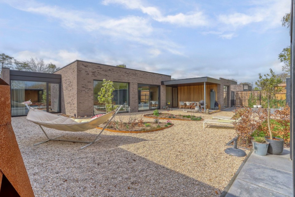 Het ontwerp kenmerkt zich door een moderne en speelse indeling, met onder meer een ruime, tuingerichte living, een hoogwaardige designkeuken en maar liefst vier slaapkamers. Daarnaast beschikt de woning over twee badkamers, een multifunctionele ruimte die eenvoudig als extra slaapkamer kan dienen, een bijkeuken, een inpandige berging en een externe berging. De hele woning is drempelloos uitgevoerd en voldoet aan de "nul-op-de-meter"-norm, waarmee een uiterst duurzaam en energiezuinig woonconcept is gerealiseerd.